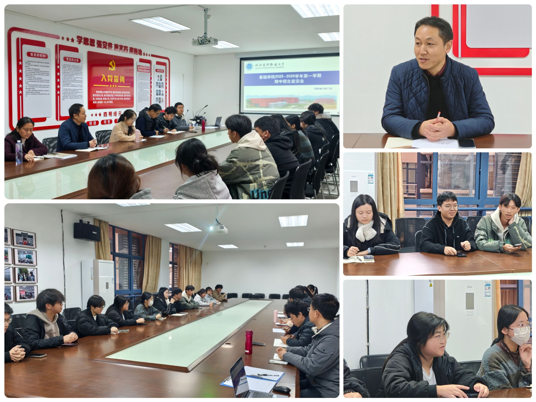 2025年12月11日下午,基础学院在727会议室组织召开了2025-2026学年第一学期期中教学师生座谈会。会议由基础学院学术副院长秦永华主持,各学院学生代表、基础学院各教研室主任及教学督导组成员参加会议。座谈会旨在搭建师生常态化交流平台,听取学业反馈,促进教学相长,共同提升教学质量。