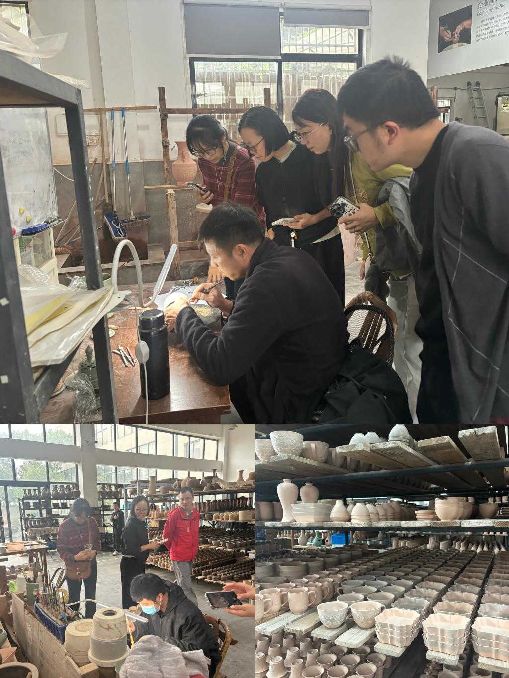 下午的活动聚焦于参观青瓷制作体验环节。揉泥、拉坯、修坯……看似简单的步骤,实际操作起来却需要十足的耐心与巧思。老师们认真聆听讲解,看着工艺师傅们细心操作,在转动的轮盘上,一团团朴素的泥坯逐渐初现碗、盘、杯等器物的雏形,大家深刻体会到了匠心制作的艰辛与乐趣,对青瓷文化所蕴含的精益求精、追求极致的工匠精神有了更切身的理解。