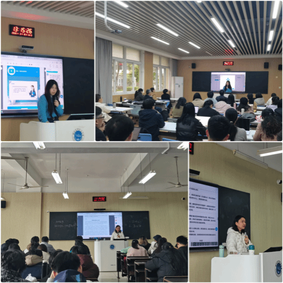 当天下午,培训会拉开帷幕。化学工业出版社医药教材编辑部主任陈燕杰、数字出版发展部编辑赵越担任主讲。两位编辑立足出版前沿,从政策导向、行业需求及教学实践等多个维度,深入剖析了数字教材的发展前景与编写要点。针对老师们关心的编写规范问题,主讲老师以我校已出版的《大学实用写作》数字教材为例,细致讲解了内容设计、多媒体资源融合、交互功能实现等关键环节,随后,现场演示了配套教学平台的操作流程,从课程建设到学习管理,从即时测评到数据分析,一幅幅智慧教学的生动画卷徐徐展开,让参训教师真切感受到数字化工具为课堂带来的无限可能。老师们纷纷表示受益匪浅,不仅对数字教材建设有了更深的理解,也为开展混合式教学、建设精品课程打开了新思路。